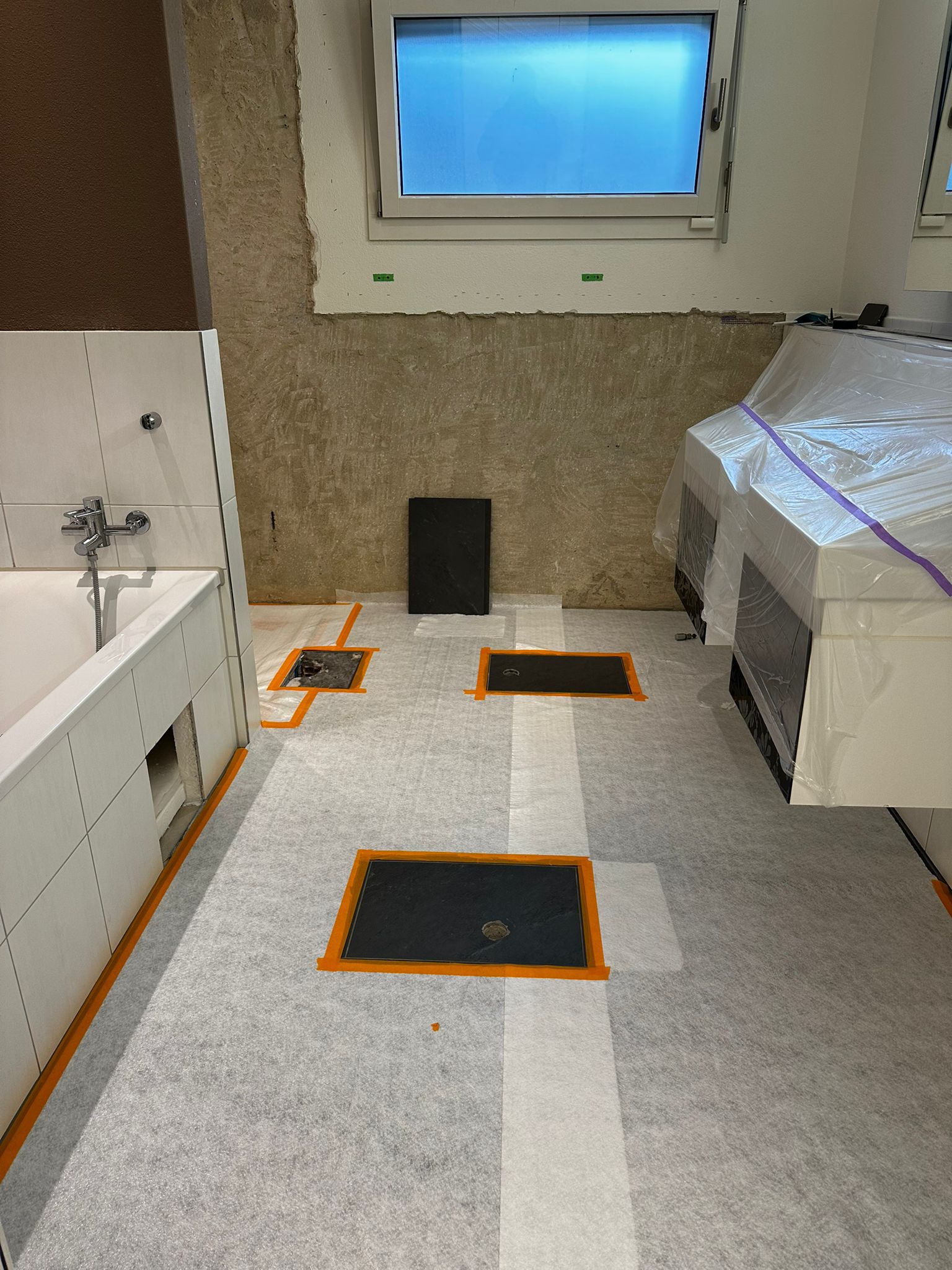 Im Badezimmer wurden Boden- und Wandplatten neu verlegt sowie sämtliche Fugen und Silikonanschlüsse erneuert.